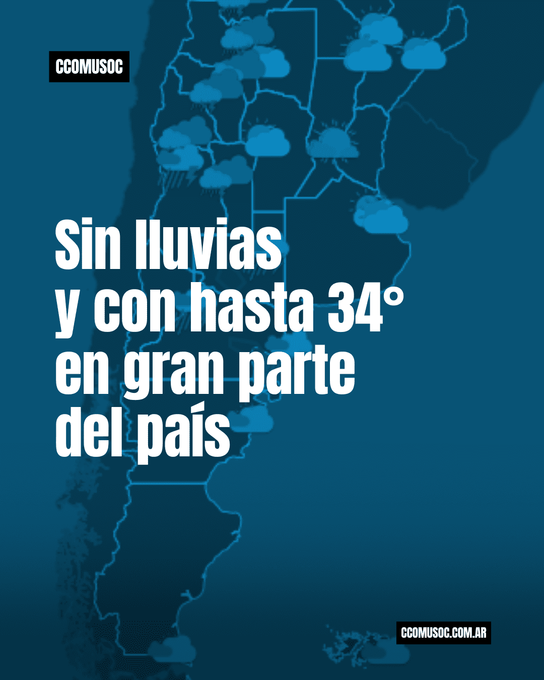 - Domingo 25: se mantendrán condiciones similares, con 34°C de máxima y 24°C de mínima, sin lluvias previstas.